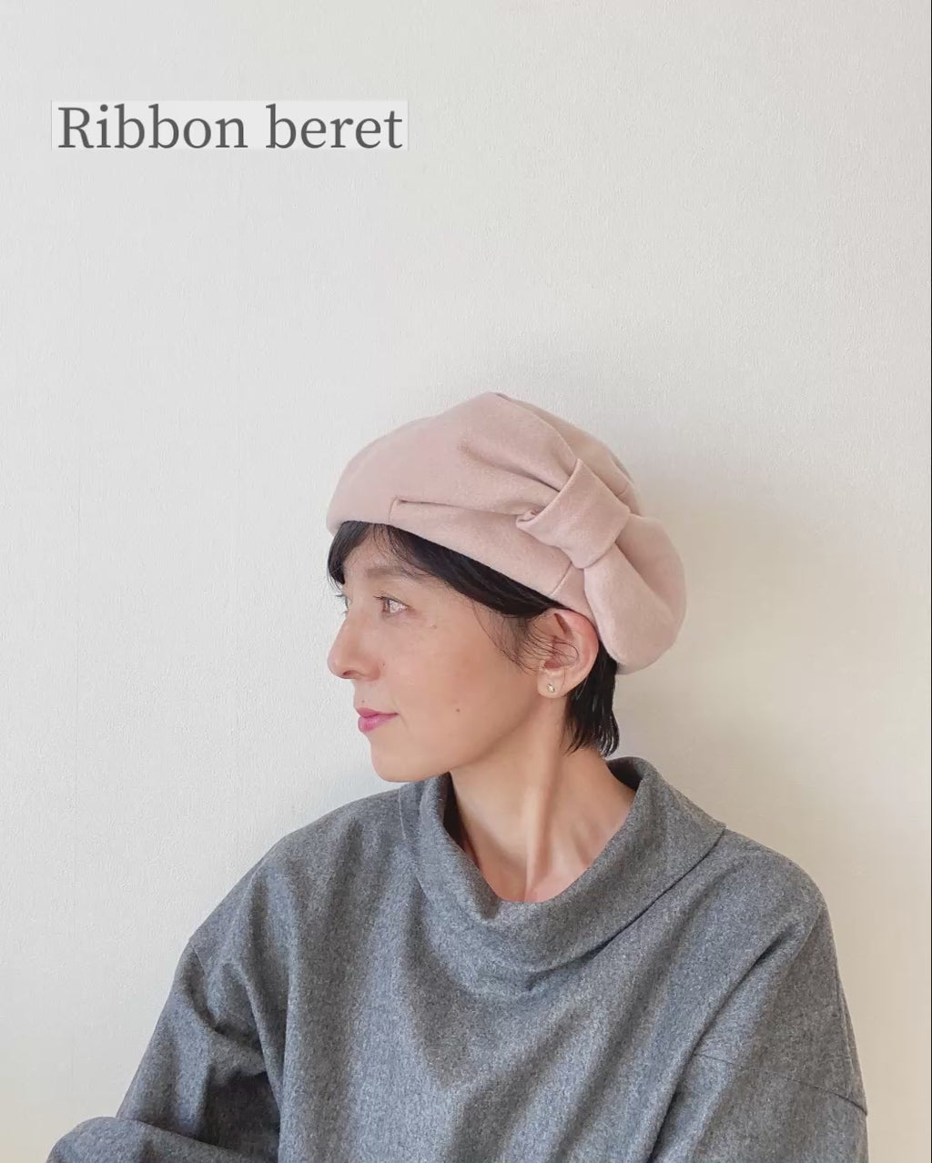 ふっくらした大きなリボンのついたベレー帽、でも大人の女性に楽しんでほしい!